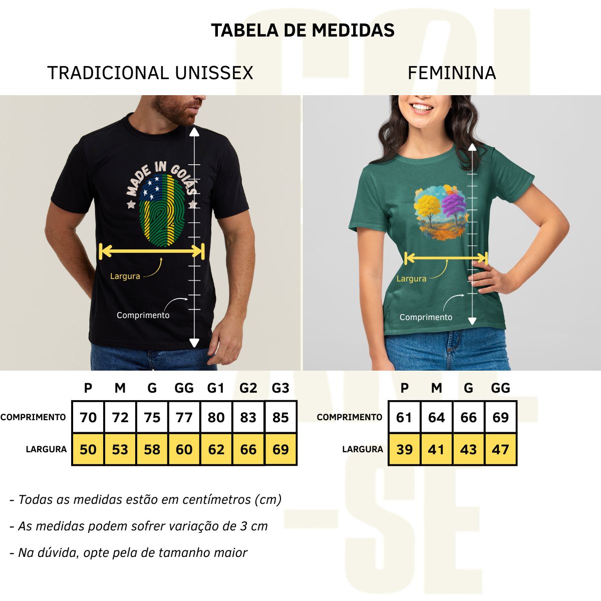 As medidas do nosso estoque da Feira da Lua são um pouco diferentes das medidas do nosso site, por serem fornecedores diferentes. Abaixo segue o guia de medidas que trabalhamos na Feira da Lua.